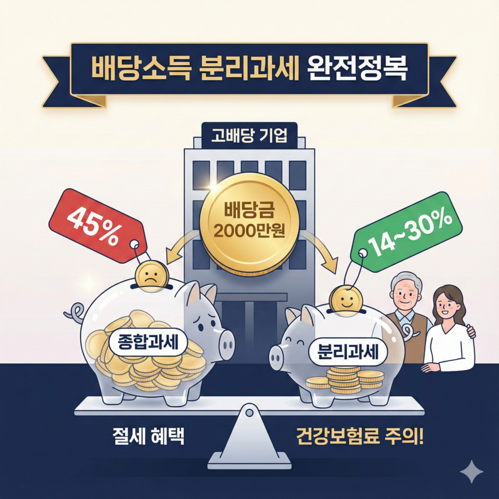 기존에는 모든 소득을 합산해 과세했지만, 앞으로는 요건을 갖춘 고배당 기업에서 받은 배당금은 따로 떼어내어(분리) 낮은 세율로 세금을 매깁니다. 고소득자일수록 절세 효과가 극대화됩니다.