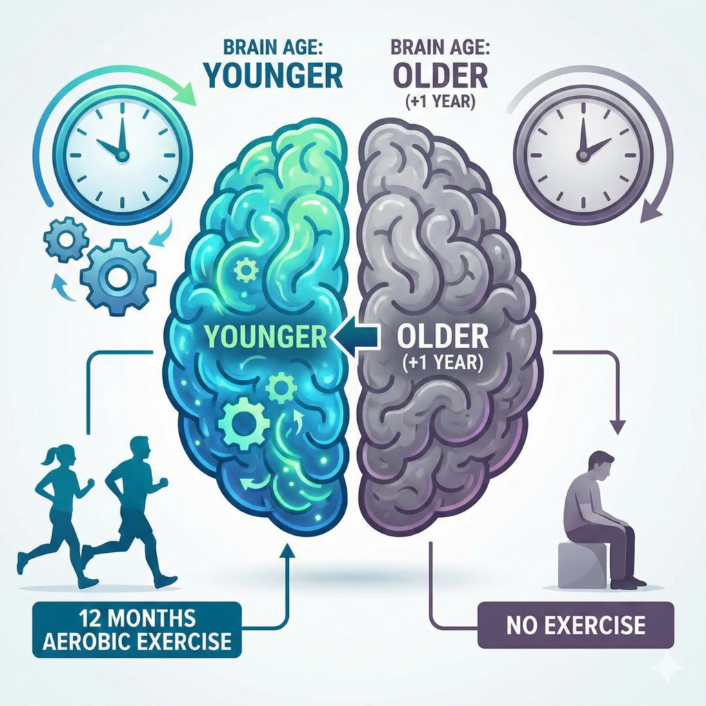 • 대조군(비운동): 뇌 나이 약 0.35년 증가 (더 늙어짐)